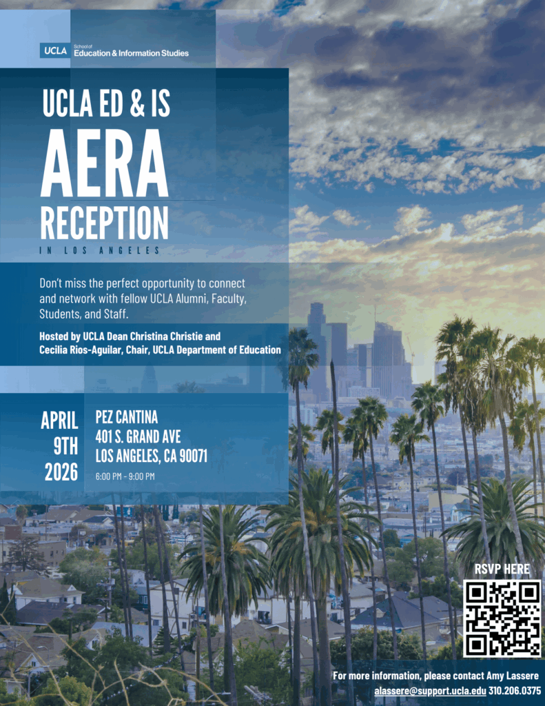 Join us for our 2026 UCLA Ed&IS AERA Reception in Los Angeles! Don’t miss the perfect opportunity to connect and network with fellow UCLA Alumni, Faculty, Students, and Staff.
