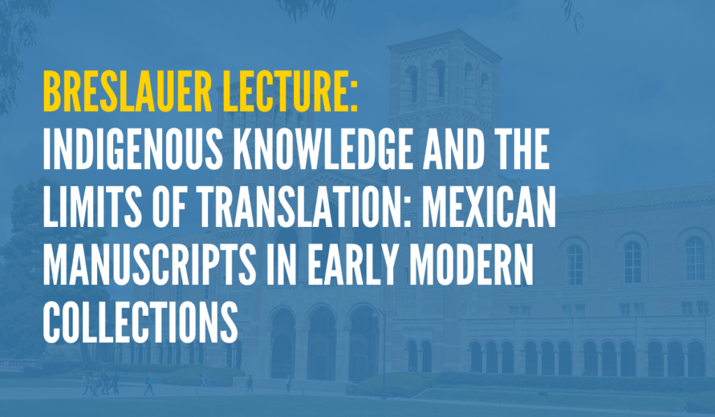 Join the UCLA Department of Information Studies for its Breslauer Lecture: Indigenous Knowledge and the Limits of Translation: Mexican Manuscripts in Early Modern Collections