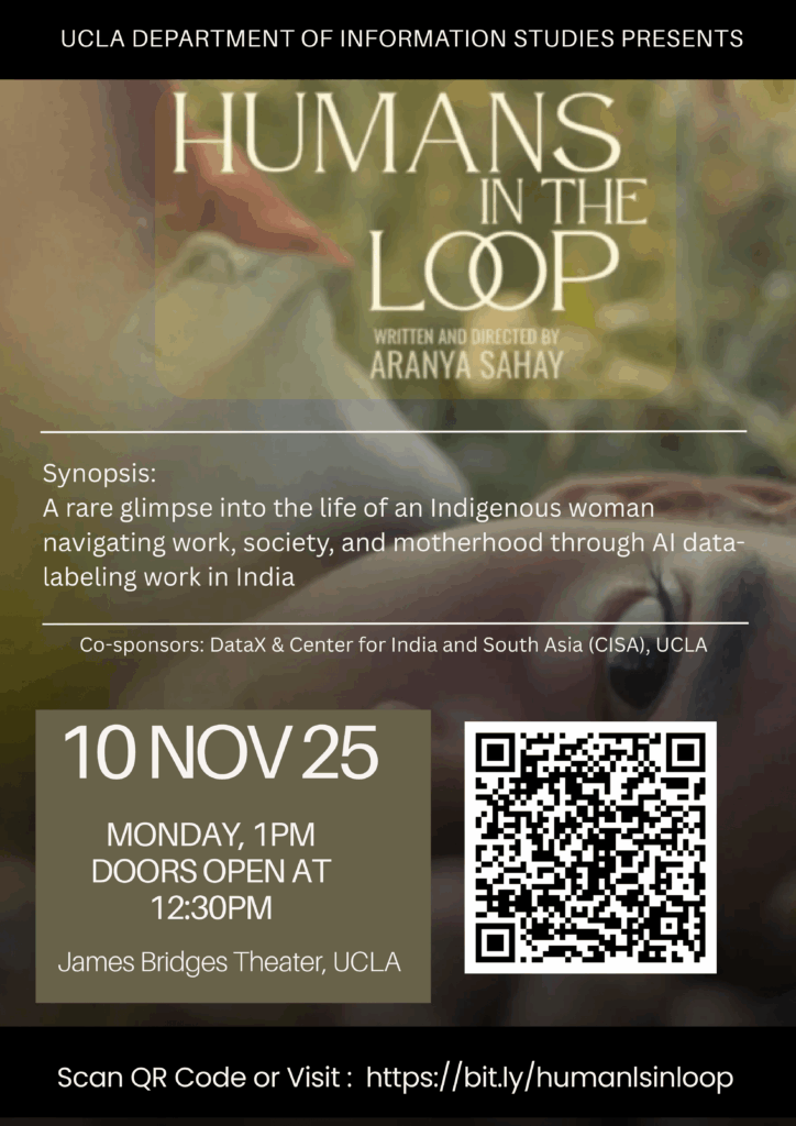 Come join us for a special screening of the thought-provoking documentary Humans in the Loop at the James Bridges Theater! Explore the impact of human involvement in artificial intelligence and technology. The film centers the life story of an Indian woman from an Indigenous community navigating the global AI economy for social mobility and sustenance.