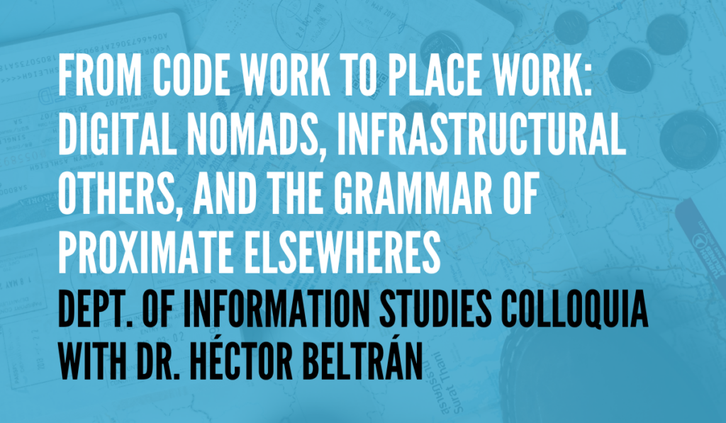 Drawing on ethnographic fieldwork in Mexico City and San Juan, Dr. Héctor Beltrán will examine how U.S. tech workers construct proximate elsewheres, locations close enough for convenience, yet foreign enough to sustain the nomadic calculus. The talk engages anthropology of technology, platform studies, and relational racialization frameworks to ask: who counts as infrastructure, whose knowledge gets indexed, and what refusal looks like from inside a system that wasn’t built to accommodate it.