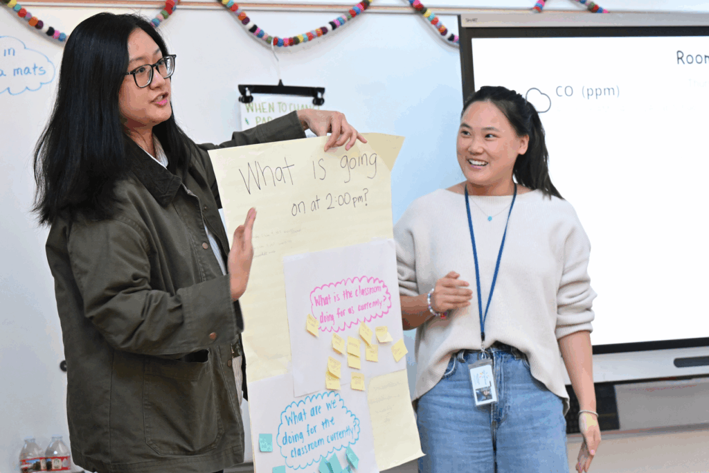 Lee, who has conducted other studies at UCLA Lab School around environmental learning, says that providing the students with air quality data throughout the day has propelled them to asking research questions, starting when high levels of CO2 were observed. She mounted air quality sensors in classrooms and gave access to the data to the students so that they could watch how CO2 levels fluctuated throughout the day.